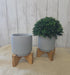 Ceramic Grey Planter 4" x 4" with Wood Stand Set of 2